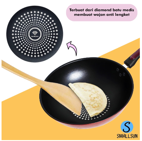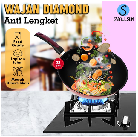 Diamond Wok Pan Wajan Penggorengan Anti Lengket Batu Medis Serbaguna Ukuran 32cm