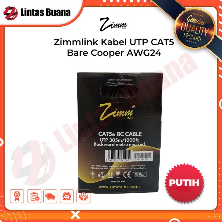 Zimmlink Kabel UTP CAT5 AWG24 FULL COPPER/Tembaga Murni