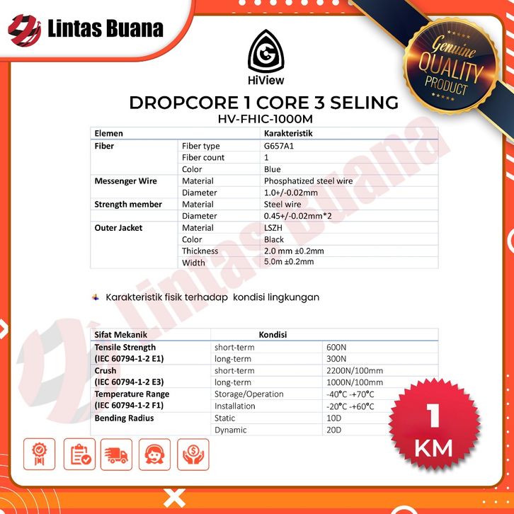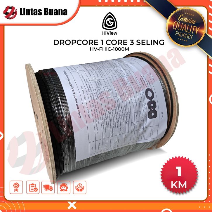 Kabel Dropcore 1 core 3 sling 1000 meter Hiview Kabel Fiber Optik FTTH 1core 1km HV-DC1CORE-1000