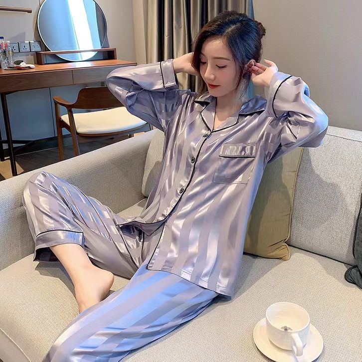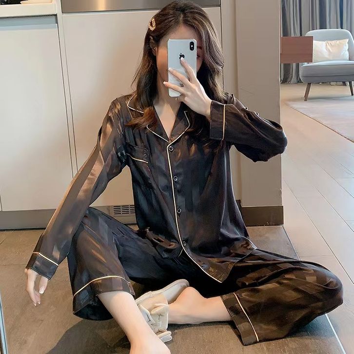 GRATIS ONGKIR Baru musim gugur es sutra piyama/ukuran besar celana panjang lengan longgar 2 potong setelan homewear