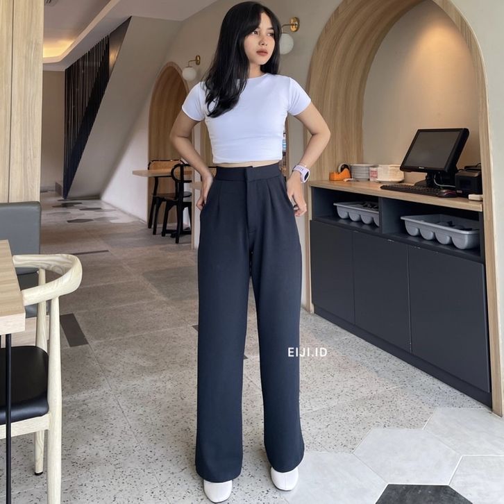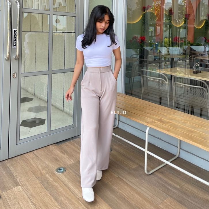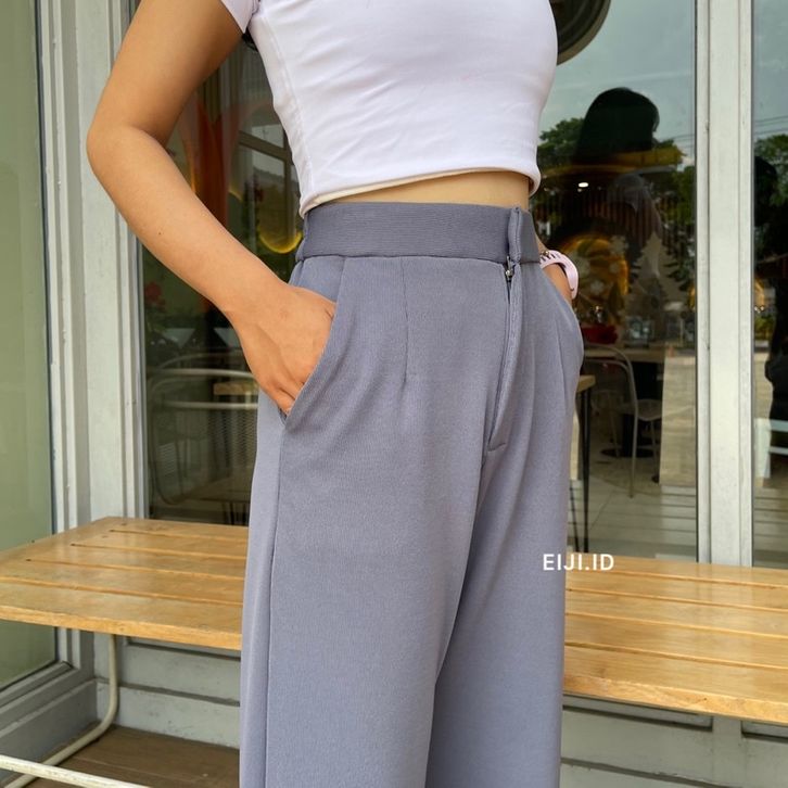 Cozie Pants - Highwaist Cullote Pants - Rib Knit Pants - Celana Kulot Wanita - Petite Friendly - Celana Anti Kusut