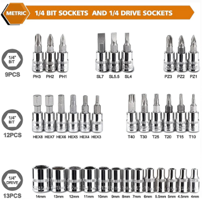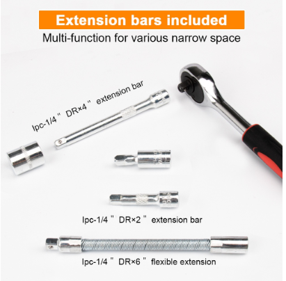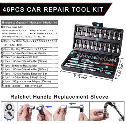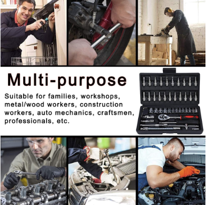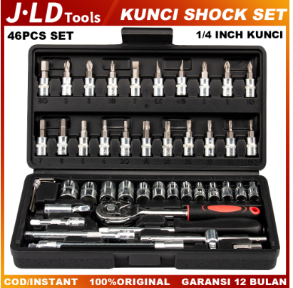 JLD kunci shock set 46Pcs kunci Socket 1/4” Motor Lengkap Socket Tool Drive Socket Ratchet Wrench Set