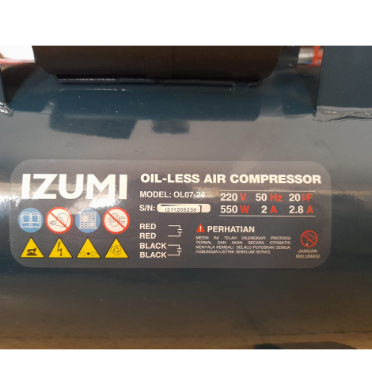 Compressor Oiless IZUMI OL 07-24 3/4HP Kompresor Angin Listrik 24Liter