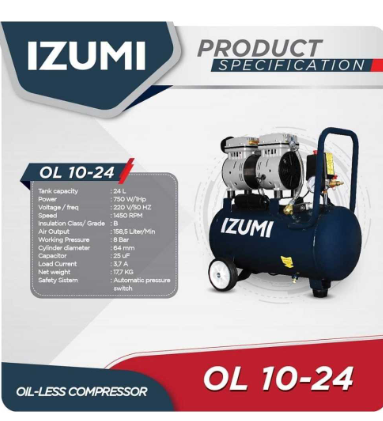 Compressor Oiless IZUMI 1024 1HP Kompresor Angin Tanpa Oli 24 liter