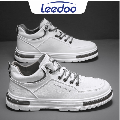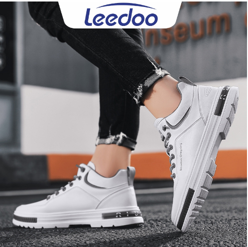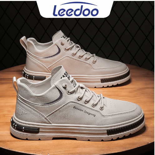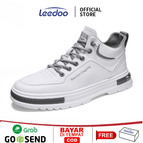 Leedoo Sepatu Kulit Pria Original Kekinian Sneakers Casual Tinggi Kerja Kuliah Sepatu Putih MC449
