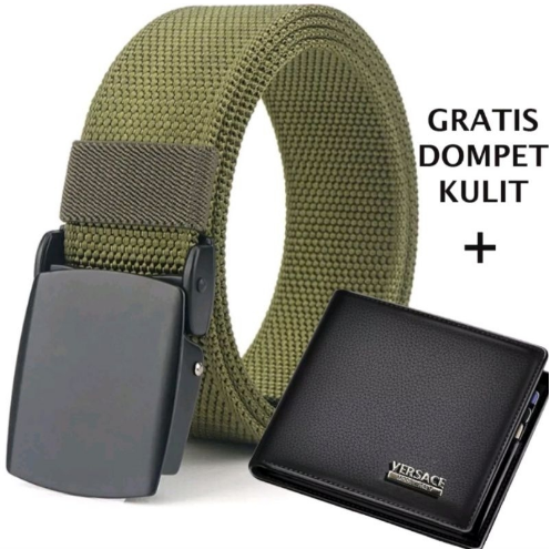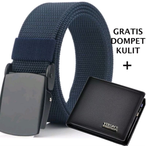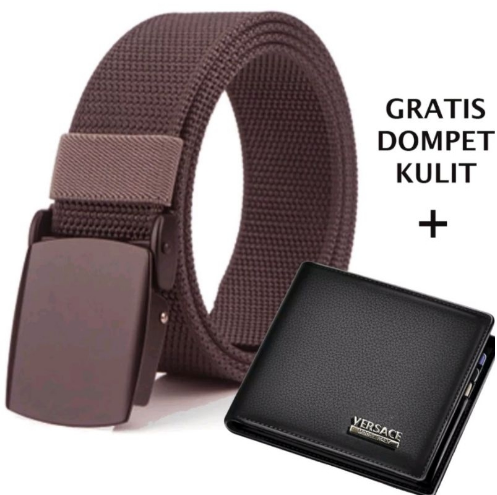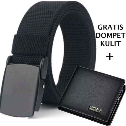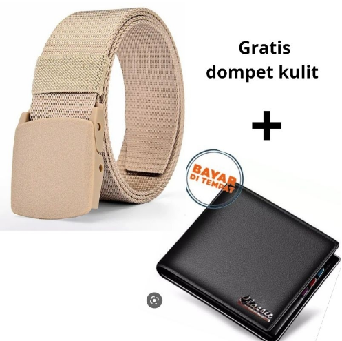 ikat pinggang pria BONUS DOMPET KULIT panjang 125cm gesper pria kerja dan Sekolah