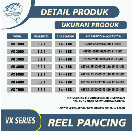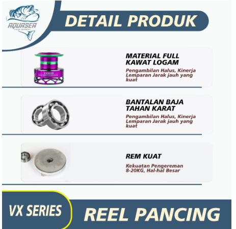 AQUASEA - Reel Pancing Spinning Laut Full Besi Reel VX1000-7000 Gulungan Pancing Kuat Reel Pancing Laut Tarikan Pancing
