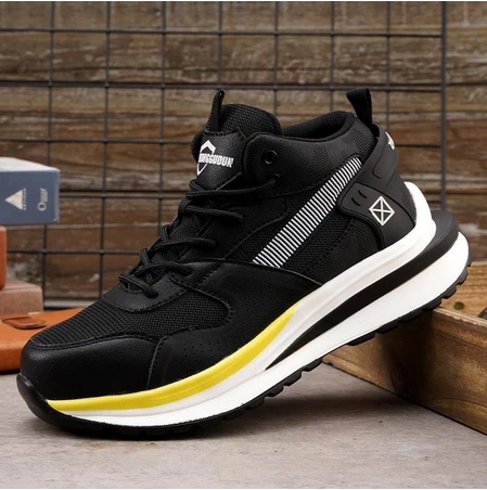 Sepatu Sneakers Safety shoes Sporty casual pria dan wanita ringan ujung ada besi hitam dan coklat