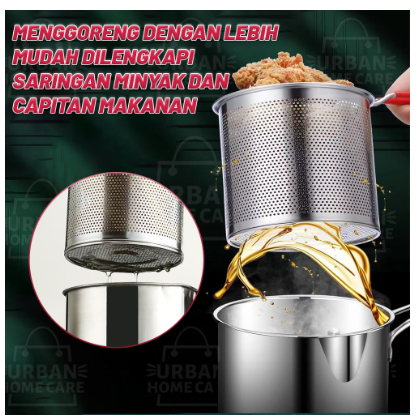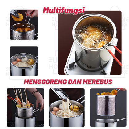URABN Panci Multifungsi 4 in 1 Multi Deep Fryer Set / Penggorengan Rebus Stainless Steel Saringan Capitan Klip Makanan