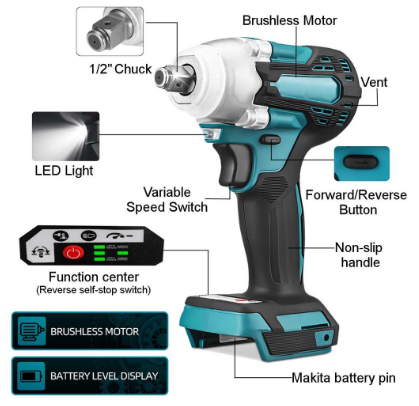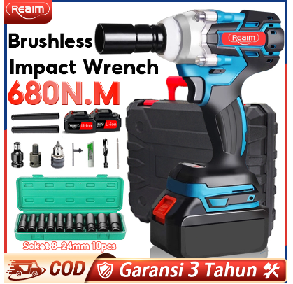 Impact wrench Cordless 388V 680NM Brushless bor impact baterai mesin impact buka baut Cordless Electric Wrench Rechargea