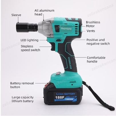 Monqiqi Kualitas 500N.m Cordless Impact Wrench 188V Baterai Lithium 1/2 " Cordless Impact Wrench Listrik 188V Cordless D