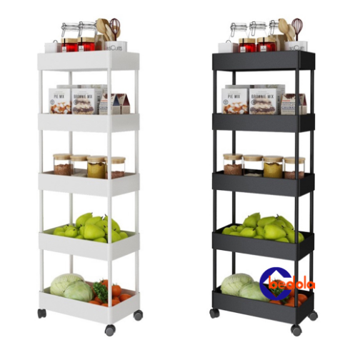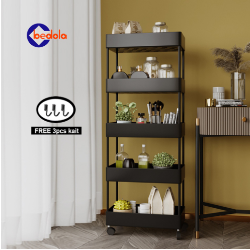 Bedola square rak dapur putih rak kamar mandi rak troli rak susun serbaguna rak dorong 5 tingkat dengan roda