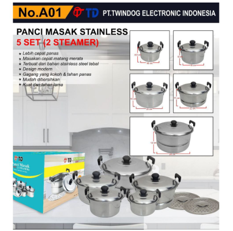 panci steamer set 5 susun tutup stenlis / Panci + Steamer Set 5 Susun Stainless