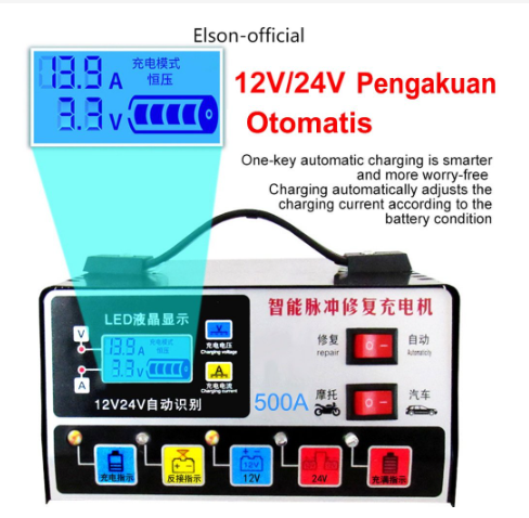 Aki Otomatis Smart Intelligent Auto Repair Mobil Pengisi daya 12v24v 400W 800AH/Charger Otomatis Aki Mobil Motor
