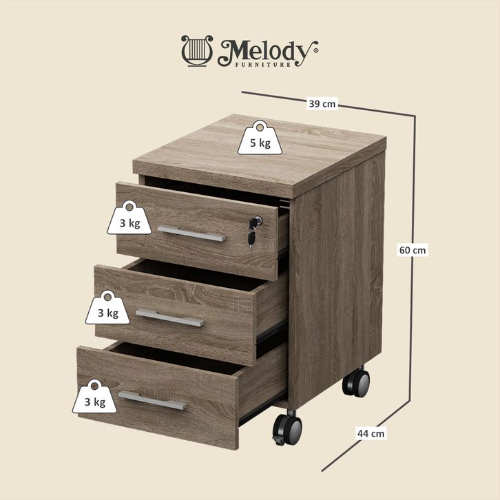 PROMO Melody Furniture Box Roda Laci Meja Frenco 2 Pedestal 3DRW SOD ORIGINAL