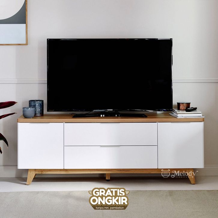 PROMO Melody Furniture - Meja Rak TV Minimalis M0DEern Libre TV Stand 160 WHITE - MATTERHORN WHITE ORIGINAL