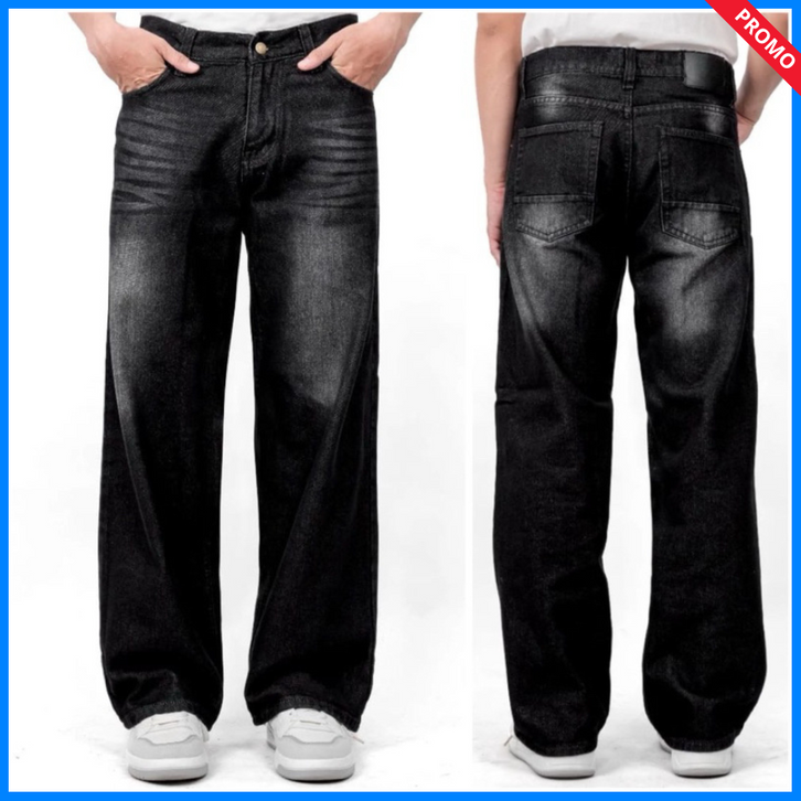 Celana Jeans Panjang Oversize Vintage DENIM Loose Fit Jeans Reguler Black Whikser