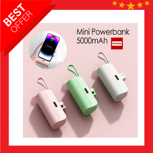 Powerbank 100000mah robot / Mipow Powerbank 5000 mAh Mini Fast Charging Support iPhone dan Type C dengan Kabel Date Led
