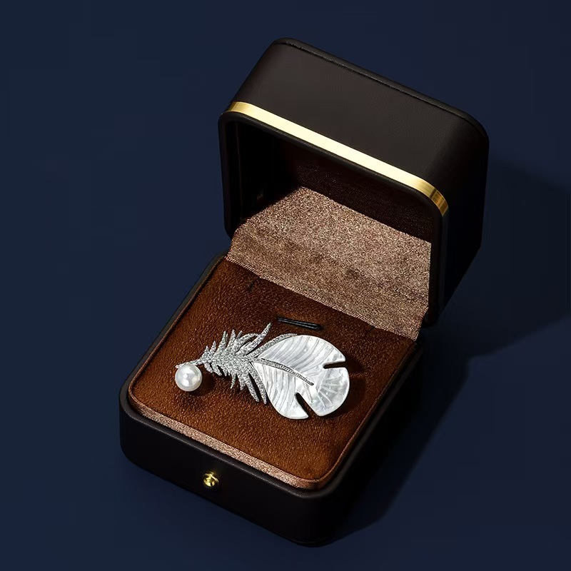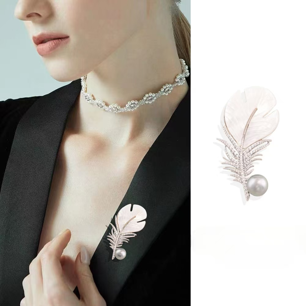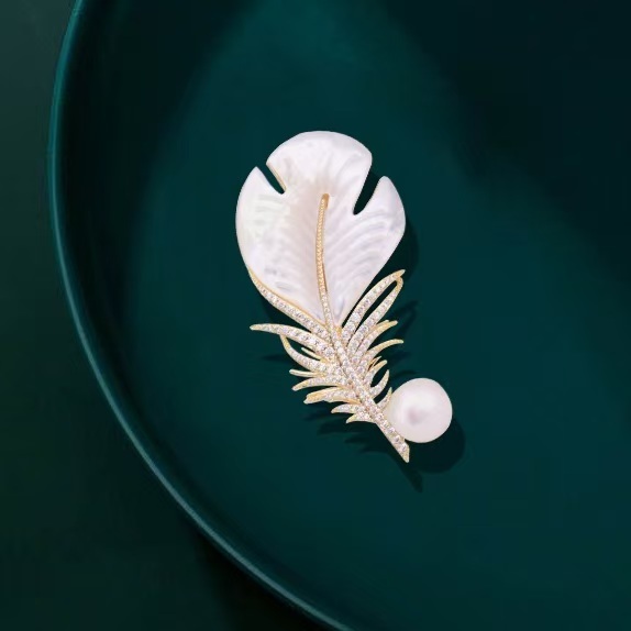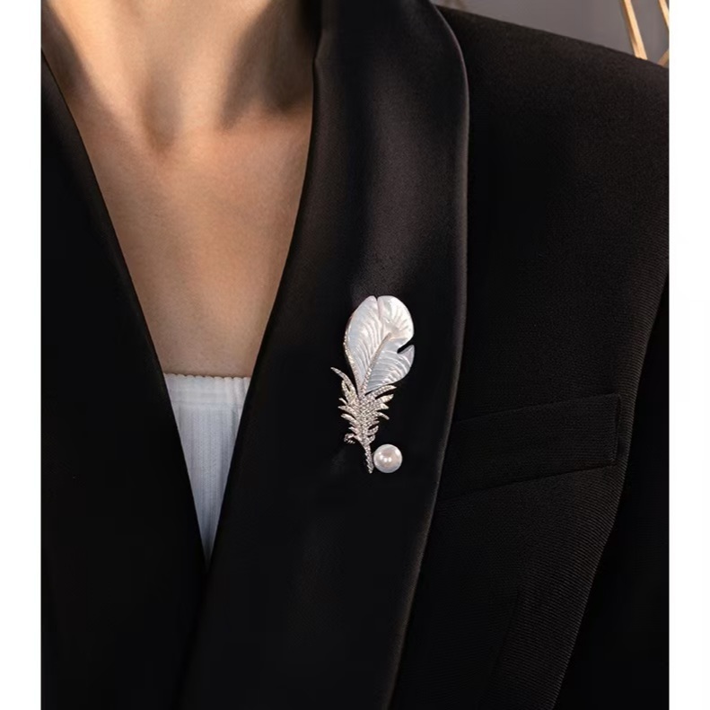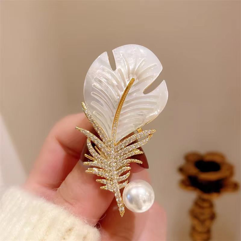Elfindo- 039 Bros Mutiara Mewah / Bros Bulu Elegent Ringan Ukiran Bulu Fashion Style Brooch