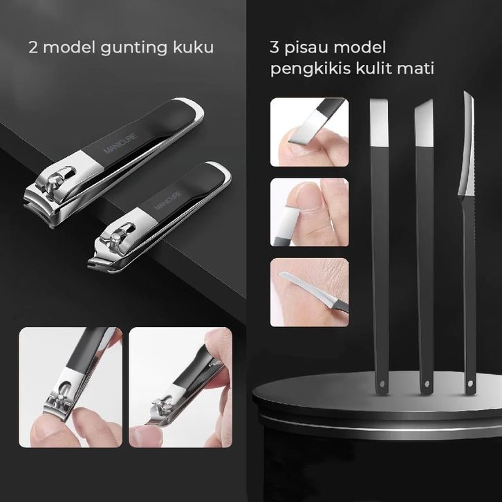 PREMIUM Manicure Pedicure Premium Set 12 Pcs - Alat Pengangkat Kuku Melengkung Carbon Steel - Perawatan Kuku