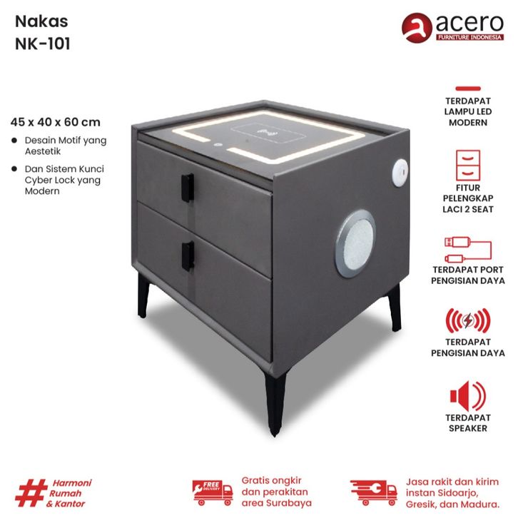 PROMO Acero Furniture - Nakas M0DEern LED Light NK-101 Bed Side Table Pengisian Daya dan Koneksi Nirkabel ORIGINAL