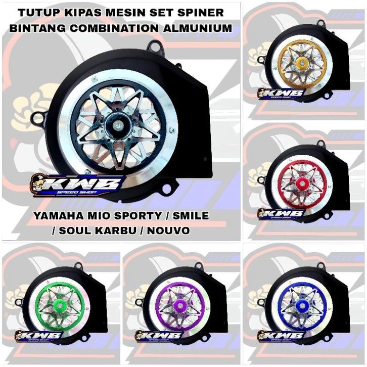 Tutup cover kipas mesin set spinner spiner bintang combination almunium cnc yamaha mio sporty / mio smile / mio soul / n