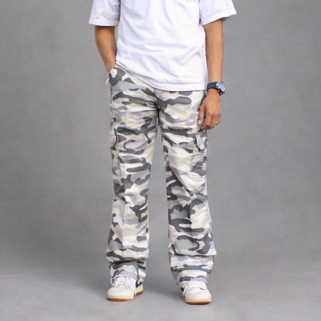 Celana Pria Cargo Camo Loreng Regular Fit Loose fit Gombarang Trandy