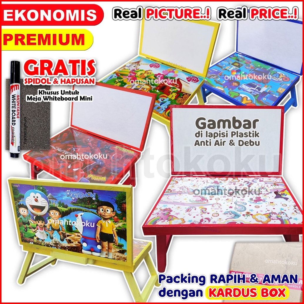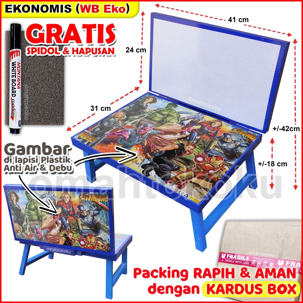 Meja Belajar Plus Papan Tulis Lipat Karakter Anak Minimalis Gratis Spidol Dan Penghapus 30x40x24 Lengkap 1 Set Banyak Pi
