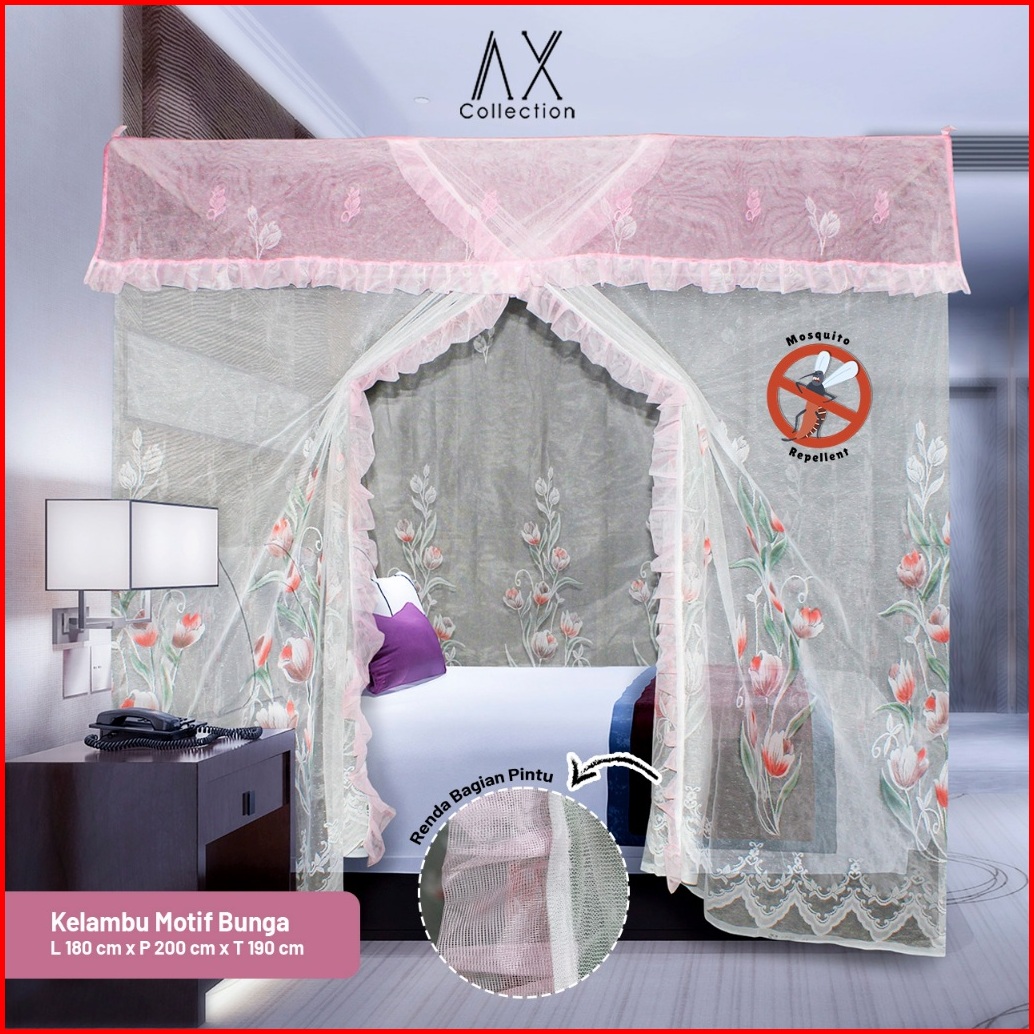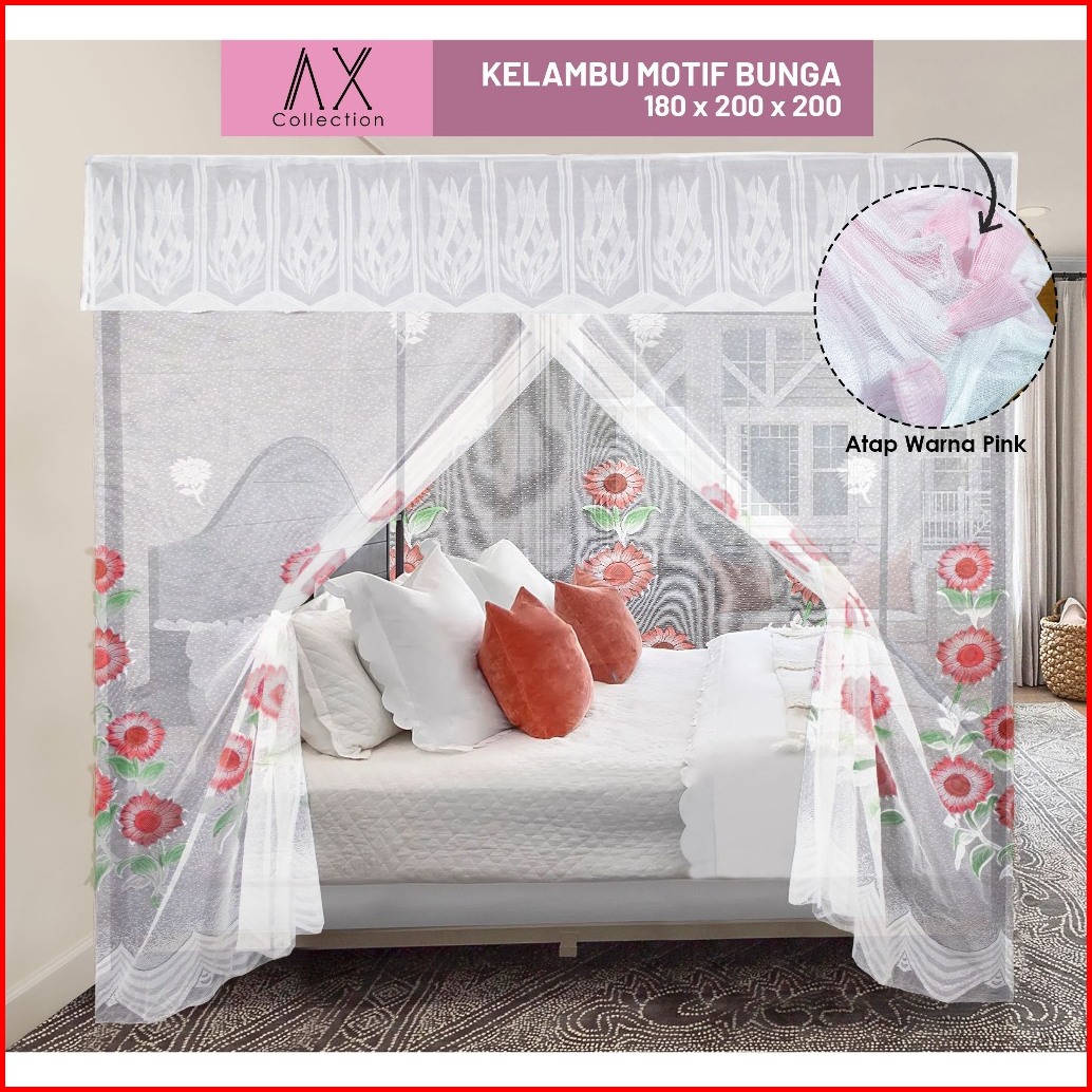 Kelambu Tidur Persegi Print Bunga Anti Nyamuk King Size No.1