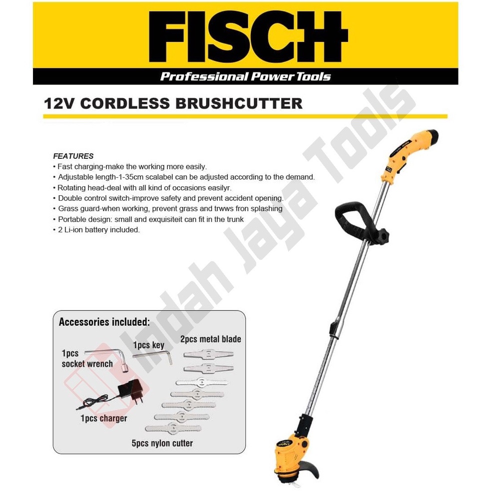 FISCH FBC12 Cordless Grass Trimmer - Mesin Potong Rumput Baterai Cas