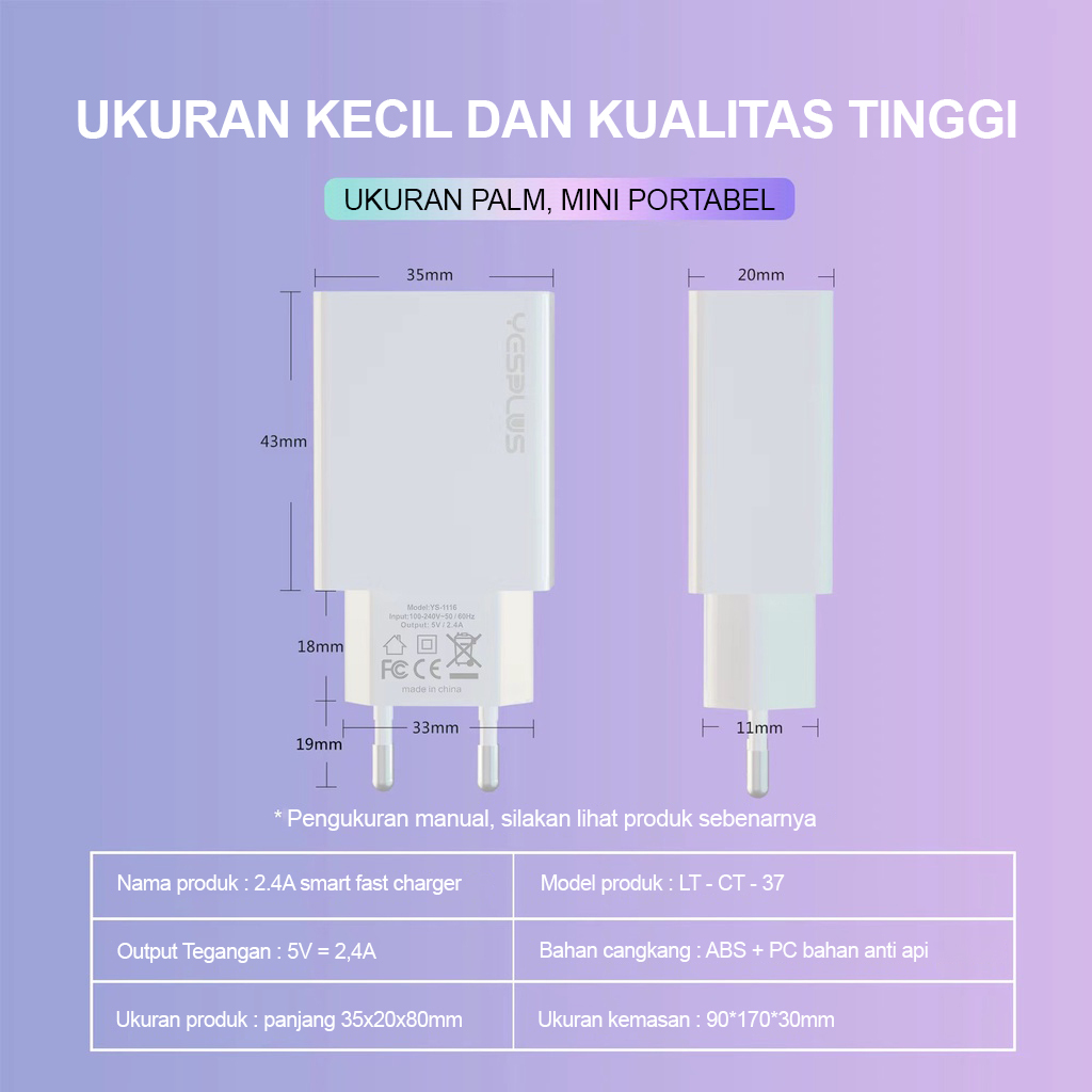 Charger Fast Charging 2.4A Power Full Speed Smart Garansi