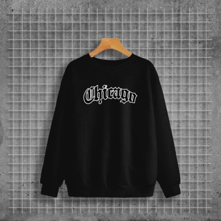 basic sweater pria wanita CHICAGO terbaru dan kekinian/sweater crewneck pria wanita model koran style