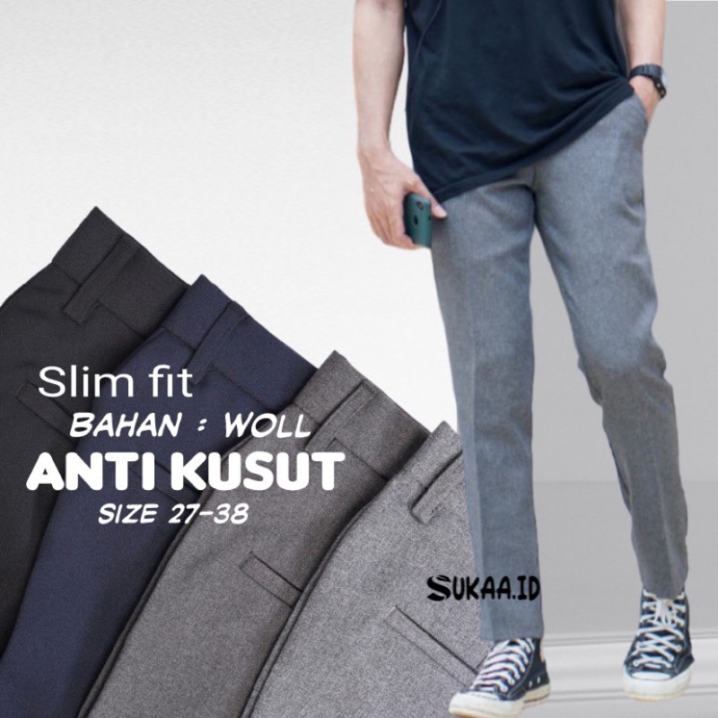 (Gratis Ongkir) Celana Ankle Pants | Celena Casual | Celana Kantor Formal Pria Slimfit Bahan Dasar Kain Woll