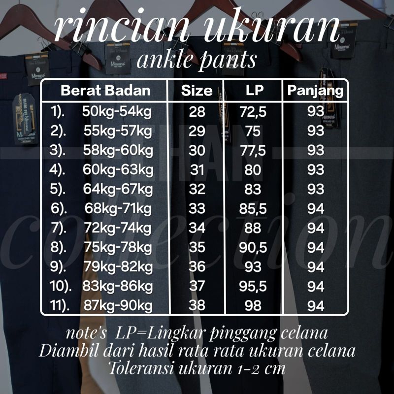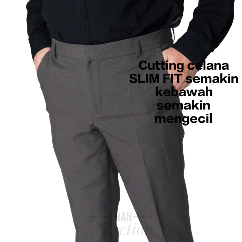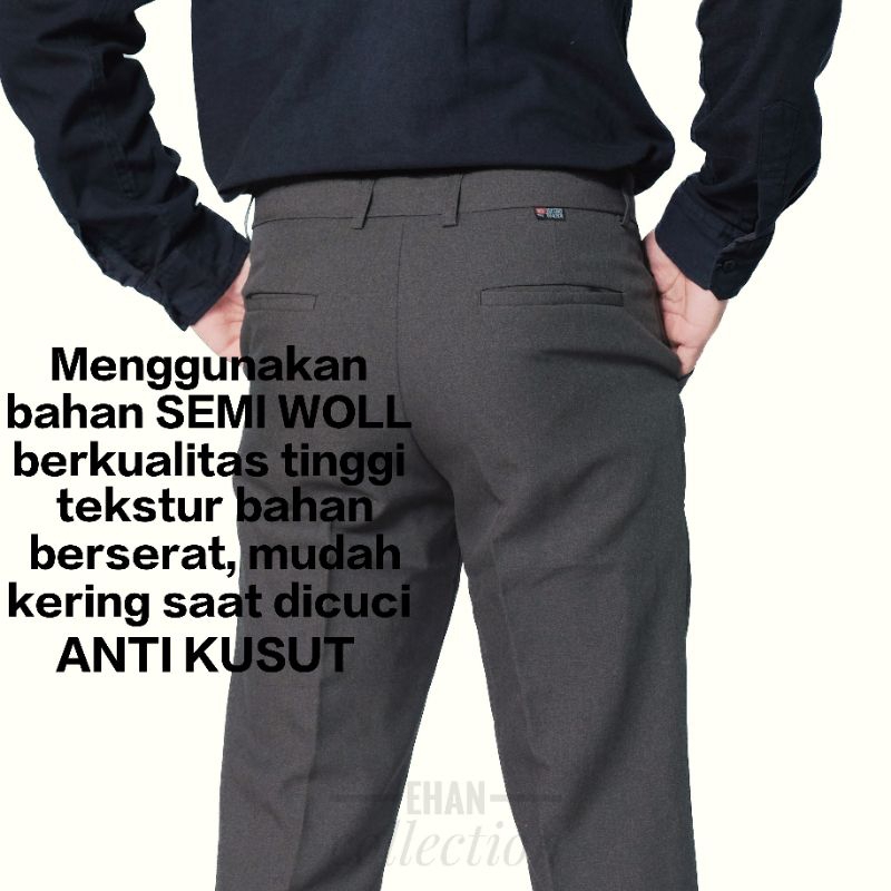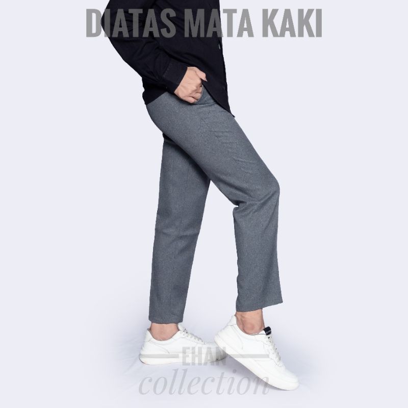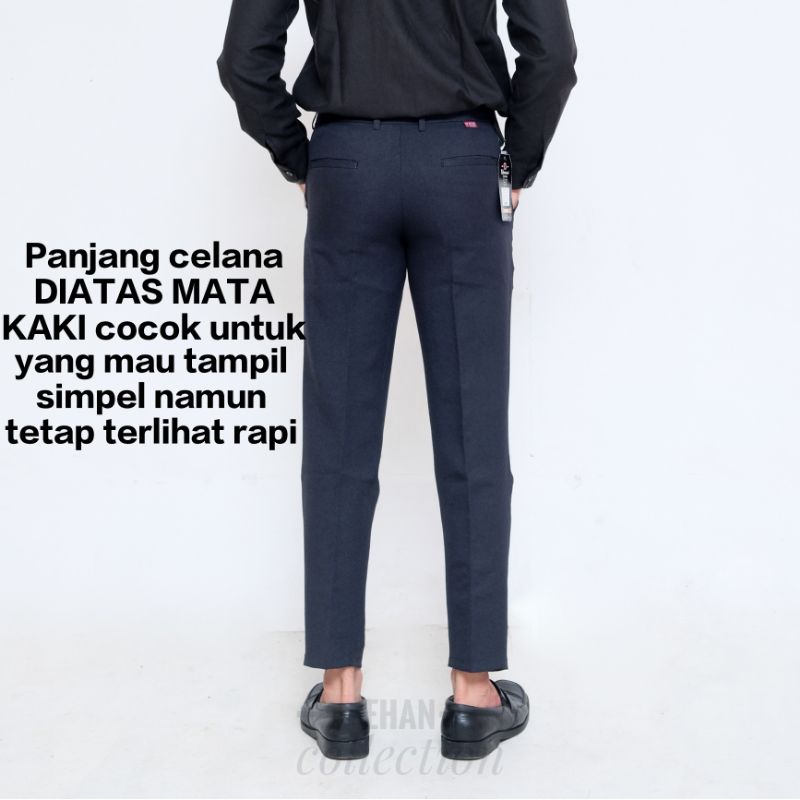 (Gratis Ongkir) Celana Bahan Ankle Pants Pria Slim fit Semi Woll