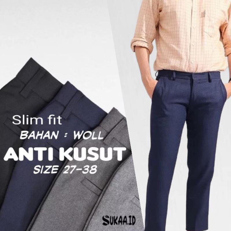 (Gratis Ongkir) Celana Ankle Pants | Celena Casual | Celana Kantor Formal Pria Slimfit Bahan Dasar Kain Woll