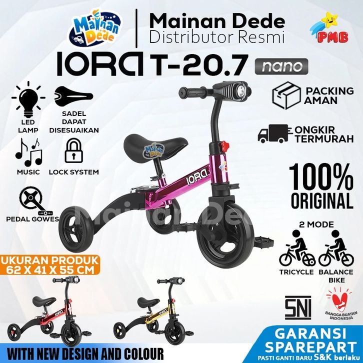 Sepeda Anak Tiga Roda 3 in 1 PMB IORA T20-7 Balance Bike Push Bike Sepeda Keseimbangan Balance Bike PMB IORA T30 / PMB I