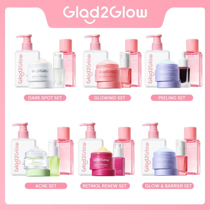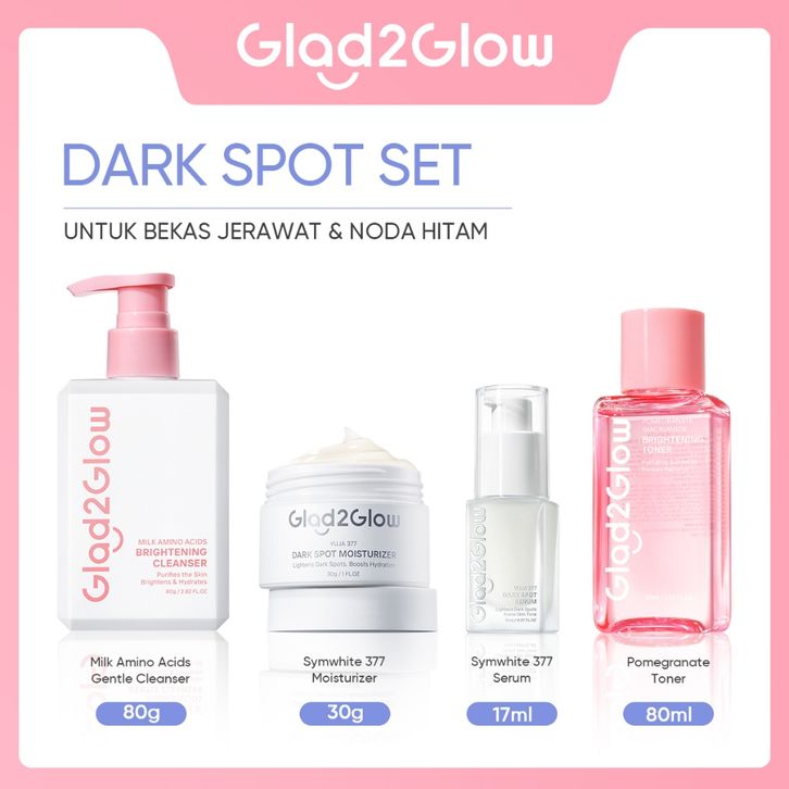 GLAD 2 GLOW OFFICIAL GLAD2GLOW SEPAKET GLAD2GLOW 4PCS GLOWING PAKET SKINCARE ALL IN1 MOISTURIZER TONER SERUM MILK