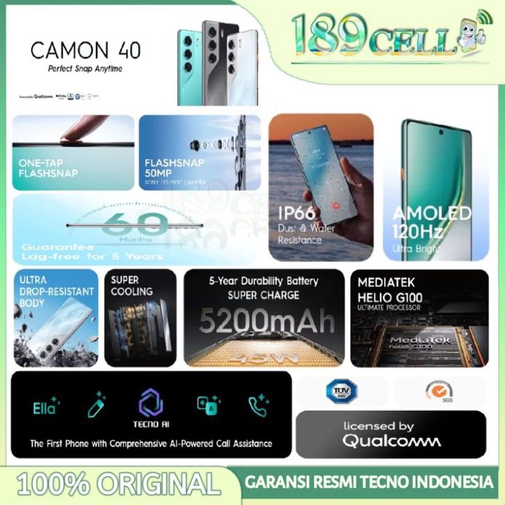 official store hp tecno TECNO CAMON 40 NFC RAM 8/256GB garansi resmi tanpa dp tecno official store
