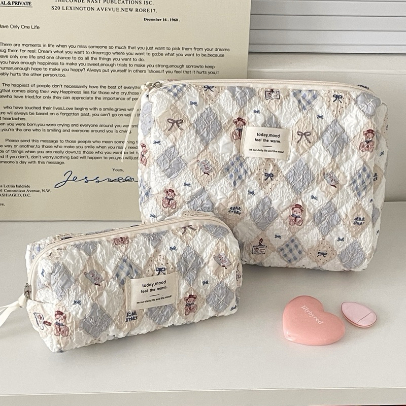TEDDY BEAR POUCH MAKEUP TRAVELING TEMPAT PENSIL KOTAK DOMPET DANDAN KOREA AESTHETIC MOTIF BERUANG TAS