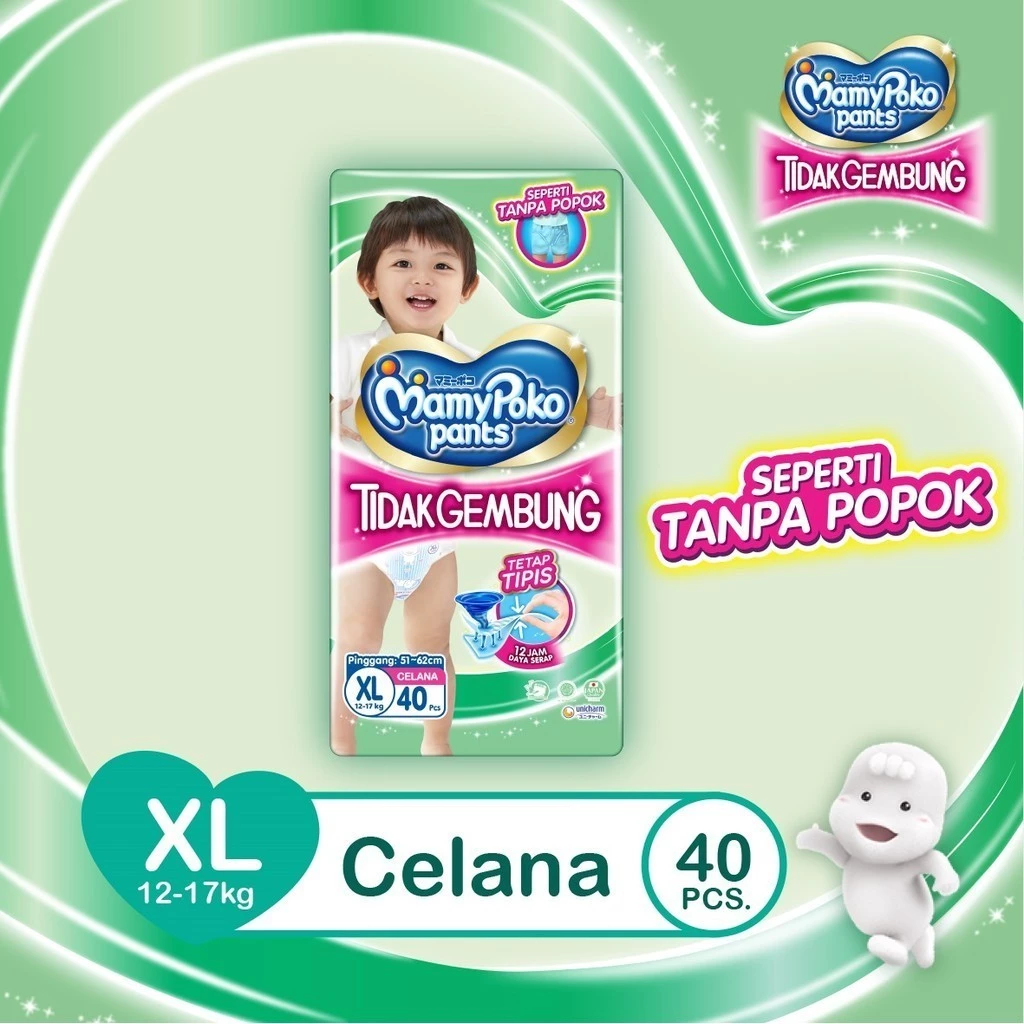 Mamy Poko Official Store | MamyPoko Pants X-tra Kering Slim Tidak Gembung Ukuran XL Isi 23/40 - POPOK CELANA