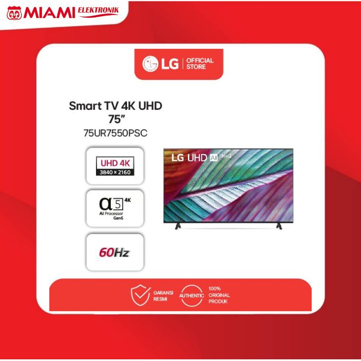 PROMO LG 75UR7550PSC Televisi / SMART TV UHD 4K 75" - 60Hz Dengan AI ThinQ HDR10 | Daya Hemat Black ORIGINAL