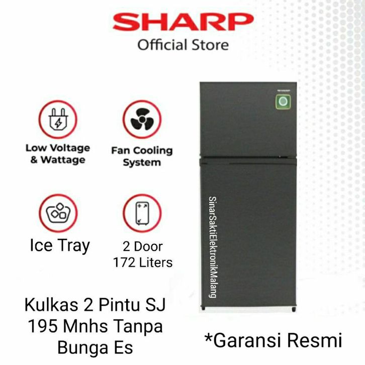 Kulkas Sharp 2 Pintu SJ195 MNHS SJ 195 MDSG Tanpa Bunga Es Sinar Sakti Dinoyo Malang