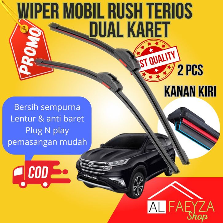 Wiper Wiper Mobil Frameless DUAL KARET Double Blade Rush Terios/All New Rush Terios 1 Set 2 Pcs Kanan Kiri