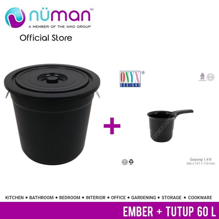 BARU Ember Air Numan 60 Liter Tempat Air 60 L Tutup Murah Plastik Tong 60L Wadah Air Baskom 60 Lt Hitam Gagang