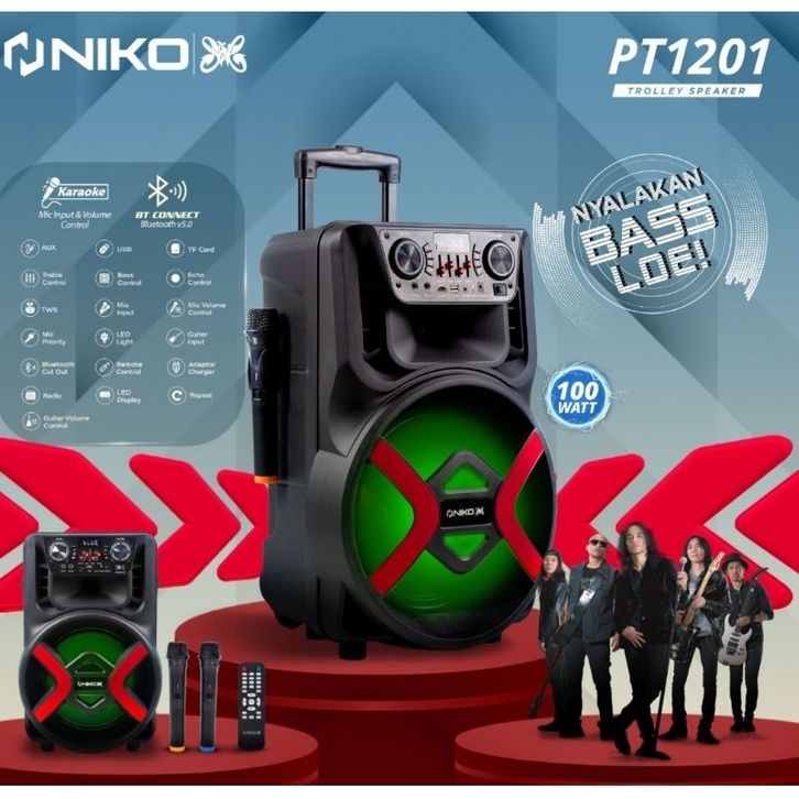PROMO NIKO SPEAKER PORTABLE BLUETOOTH UKURAN 12 INCH PT-1201 FREE 2 MIC ORIGINAL