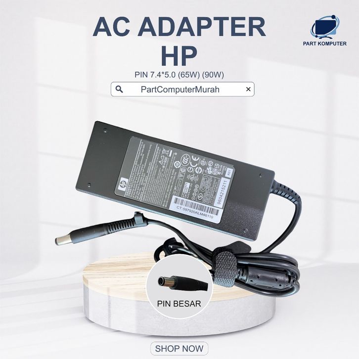 BEST SELLER Adaptor Charger Laptop HP 18.5V/19V 65W Colokan 7.45.0mm dengan Pin Tengah Output Free Kabel Power berkuali