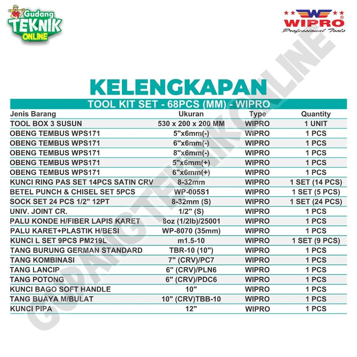 Tool Kit Kunci Set 68pcs WIPRO TS-068 / Tool Kit Sock Sok Set Box WIPRO TS068- TOOL KIT SET BOX WIPRO TS 068