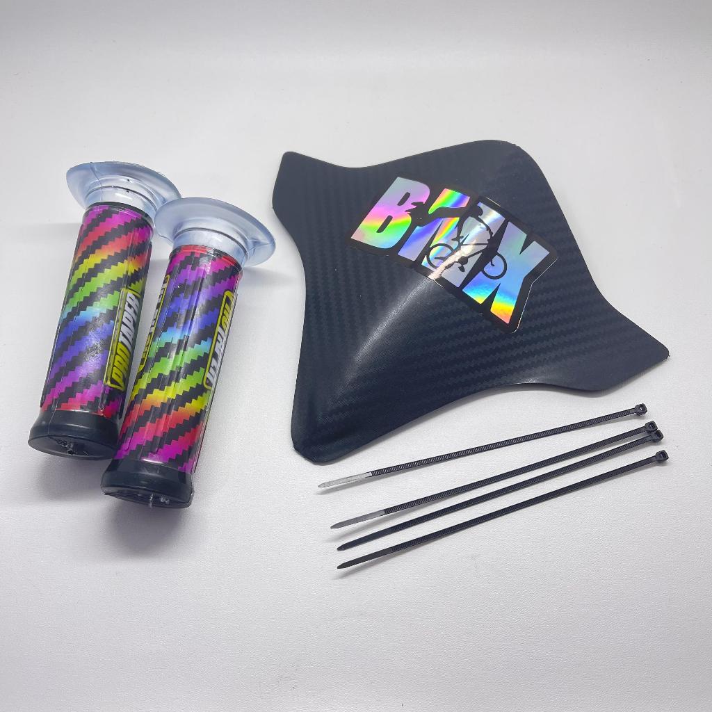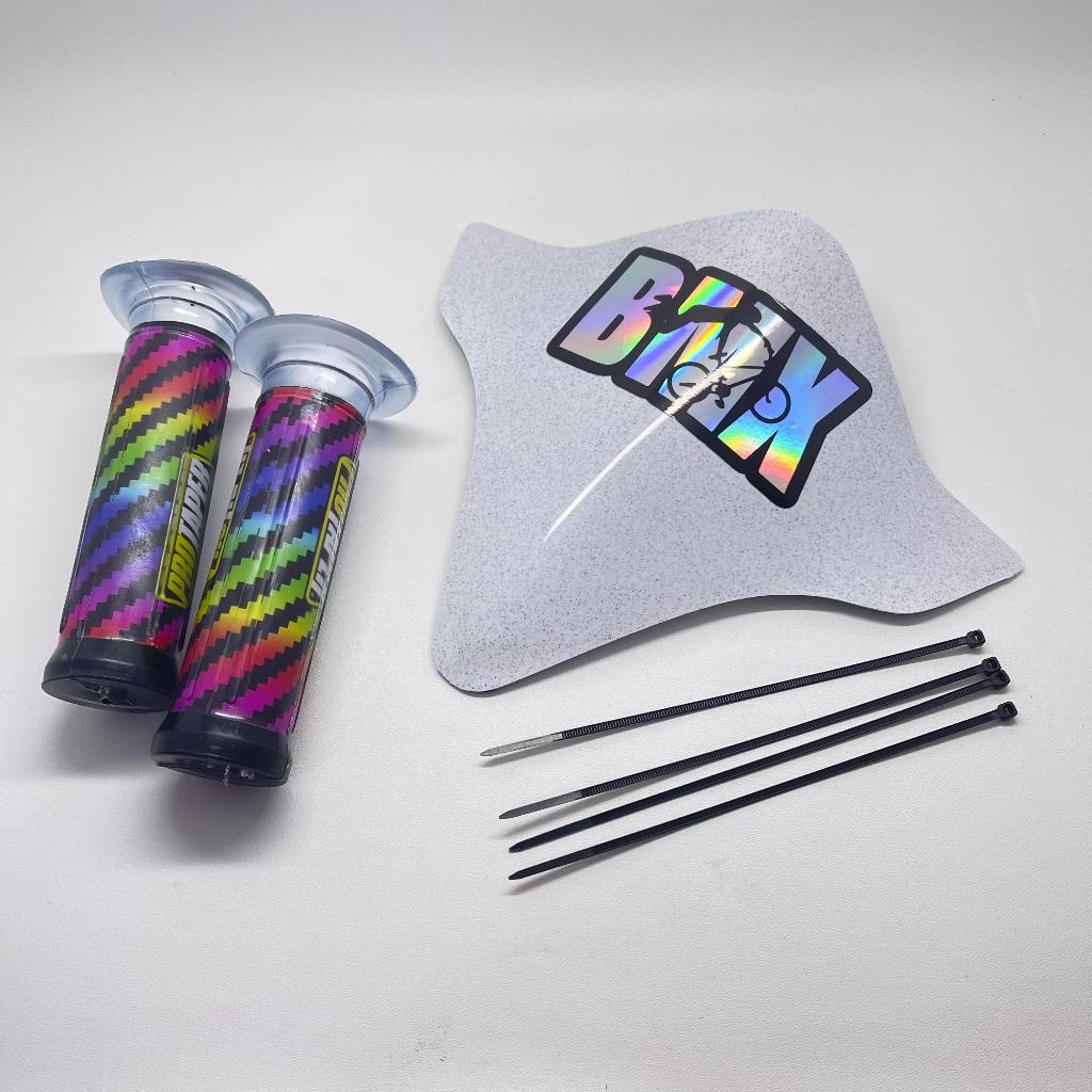 PAKET VISOR SEPEDA BMX+STIKER HOLOGRAM BMX+HANDGRIP PELANGI DAN HITAM