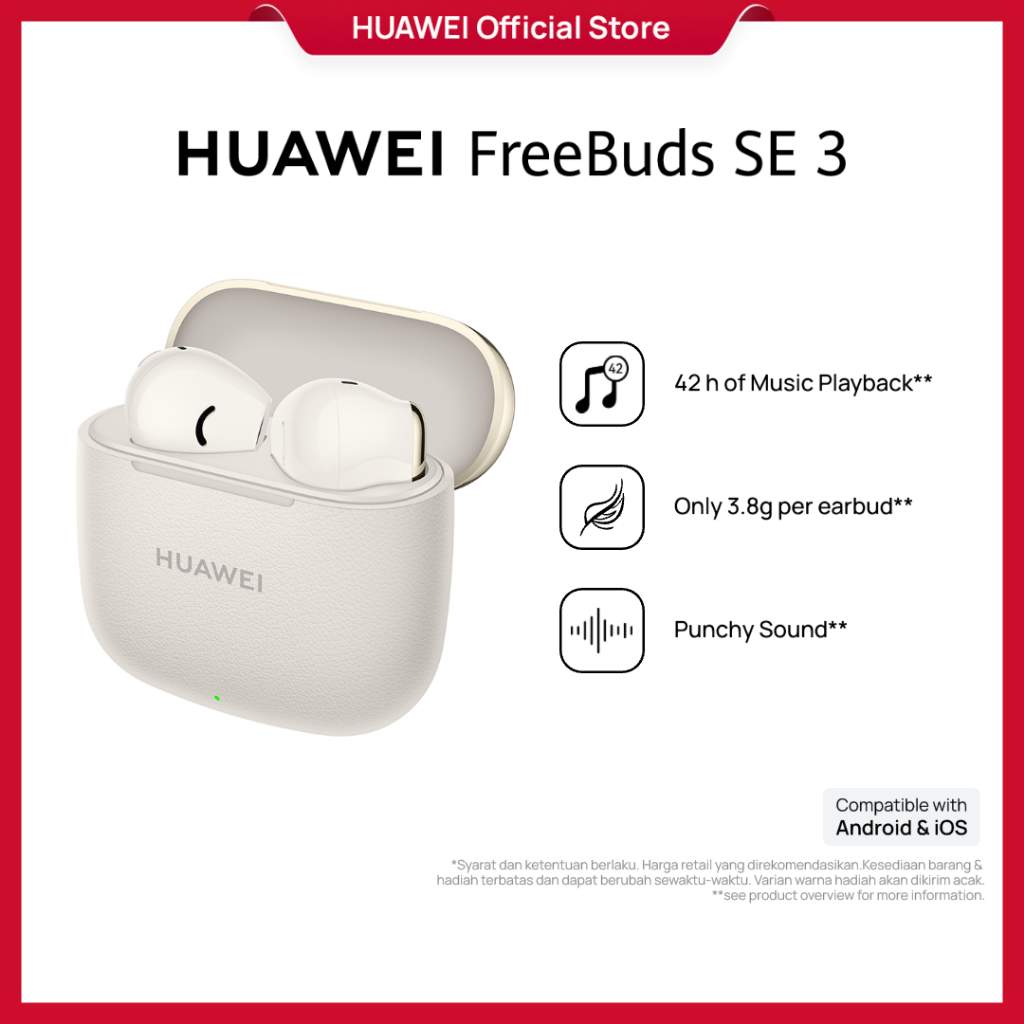 HUAWEI FreeBuds SE 3 Earphone Wireless TWS | Daya Tahan Baterai 42 Jam | Ringan & Ringkas | Pengisian Baterai Cepat