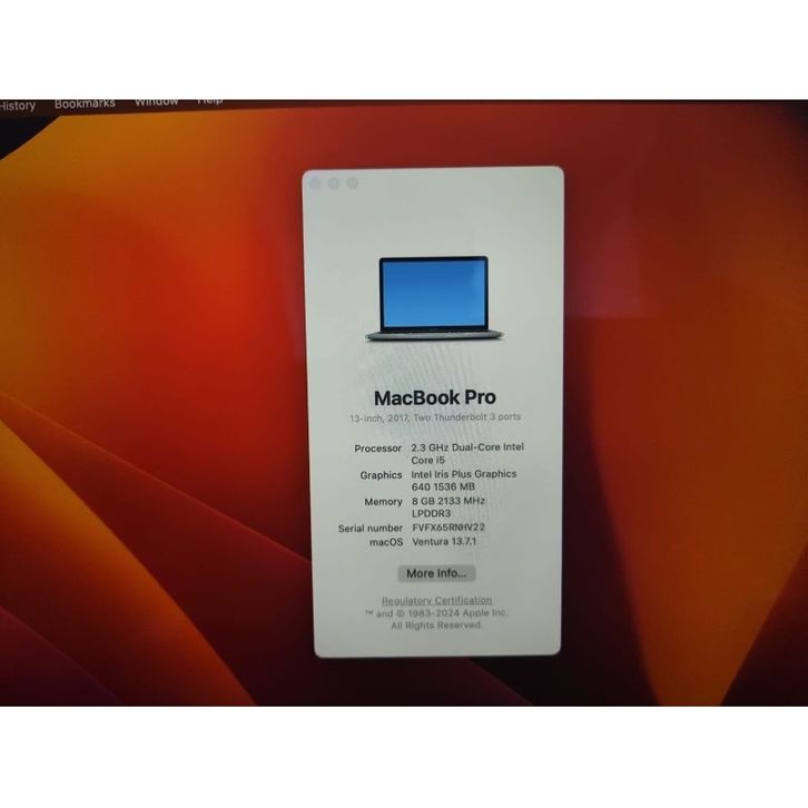 Macbook Pro 2017 Ram8 Ssd256 13 inch Corei5 Os Monterey Vga Intel Grade A